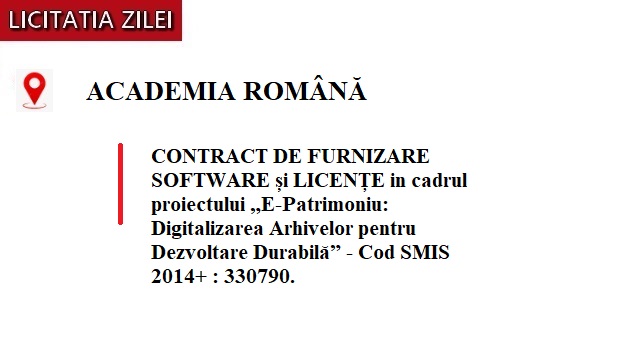 Bucuresti, 27 Nov 2025 - Academia Română a anunțat lansarea unei proceduri de achiziție publică pentru furnizarea de software și licențe, în cadrul proiectului „E‑Patrimoniu: Digitalizarea Arhivelor pentru Dezvoltare Durabilă”, cod SMIS 2014+: 330790. Obiectul licitației îl constituie o licență Adobe Creative Cloud, destinată unui utilizator, cu acces la principalele aplicații de editare și design.