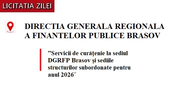 Brasov, 19 Nov 2025 - Direcția Generală Regională a Finanțelor Publice Brașov a anunțat, la 19 noiembrie 2025, deschiderea procedurii de achiziție publică pentru servicii de curățenie la sediul central și la structurile subordonate, valabile pentru anul 2026. Licitația se desfășoară în format online și marchează un nou pas în direcția eficientizării și transparenței cheltuielilor publice.