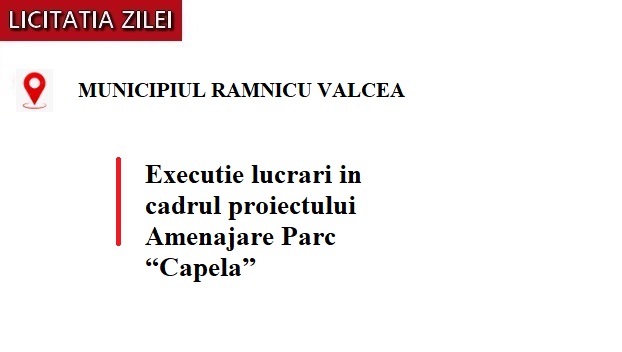 Râmnicu Vâlcea, 14 oct. 2025 – Municipiul Râmnicu Vâlcea a lansat o procedură de achiziție publică pentru execuția lucrărilor din cadrul proiectului „Amenajare Parc Capela”, cu o valoare estimată de 23.495.980,98 lei. Termenul-limită pentru depunerea ofertelor este 21 noiembrie 2025, ora 15:00.