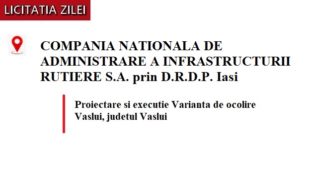 Vaslui, 16 oct. 2025 – Compania Națională de Administrare a Infrastructurii Rutiere S.A. (CNAIR), prin Direcția Regională de Drumuri și Poduri Iași, a lansat o licitație deschisă pentru atribuirea contractului de proiectare și execuție a variantei de ocolire a municipiului Vaslui. Procedura se desfășoară online, în cadrul legislației privind achizițiile publice.