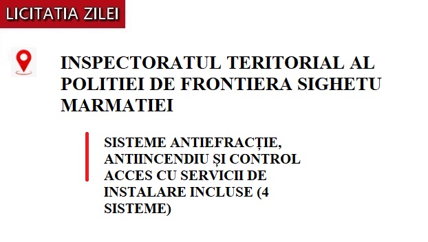 Maramures, 17 Dec 2025 - Inspectoratul Teritorial al Poliției de Frontieră Sighetu Marmației a lansat o procedură de achiziție publică pentru furnizarea și instalarea a patru sisteme integrate de securitate. Pachetul include echipamente antiefracție, antiincendiu și control acces, cu servicii complete de instalare, conform cerințelor stabilite în documentația de atribuire.