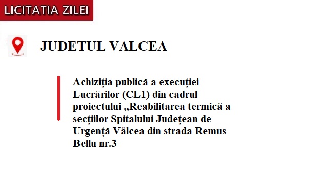 Râmnicu Vâlcea, 21 octombrie 2025 – Consiliul Județean Vâlcea a inițiat o procedură de achiziție publică pentru execuția lucrărilor aferente proiectului „Reabilitarea termică a secțiilor Spitalului Județean de Urgență Vâlcea”, situat pe strada Remus Bellu nr. 3. Contractul, încadrat la categoria lucrări, vizează modernizarea infrastructurii medicale prin intervenții de eficientizare energetică și îmbunătățire a condițiilor de funcționare.